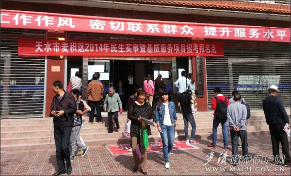 連日來(lái),麥積區(qū)2014年“民生實(shí)事項(xiàng)目和基層服務(wù)項(xiàng)目”崗位招考報(bào)名工作在區(qū)政務(wù)大廳全面展開(kāi),現(xiàn)場(chǎng)火爆。