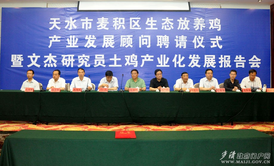當(dāng)天上午,麥積區(qū)舉行了生態(tài)放養(yǎng)雞產(chǎn)業(yè)發(fā)展顧問聘請儀式暨文杰研究員土雞產(chǎn)業(yè)化發(fā)展報告會。調(diào)研組全體成員,省市區(qū)陪同領(lǐng)導(dǎo),區(qū)直相關(guān)部門、相關(guān)鄉(xiāng)鎮(zhèn)主要負責(zé)人,相關(guān)鄉(xiāng)鎮(zhèn)畜牧中心主任,鄉(xiāng)鎮(zhèn)食藥監(jiān)所所長,畜牧局全體科級干部和技術(shù)人員,桃花苑養(yǎng)殖聯(lián)合社全體成員,第一、二批養(yǎng)殖戶等140余人參加了會議。