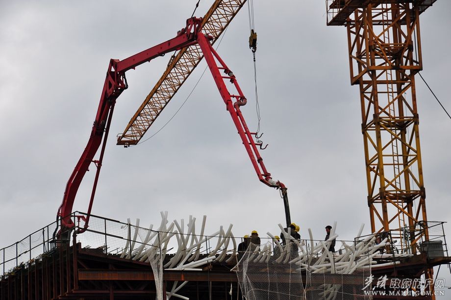 在社棠渭河特大橋慕灘村施工現(xiàn)場(chǎng),記者碰巧趕上特大橋的首梁架設(shè)儀式,隨著700多噸的橋梁緩緩吊起,現(xiàn)場(chǎng)一片歡騰。中鐵二十一局三工區(qū)的劉總告訴記者,“今天是特大橋的首梁架設(shè),以后將陸續(xù)對(duì)社棠渭河特大橋和三十甸子特大橋等馬跑泉區(qū)域的橋梁進(jìn)行架設(shè),由于當(dāng)?shù)卣С至Χ却螅瑓f(xié)調(diào)保障工作及時(shí)、到位,后面我們項(xiàng)目部會(huì)進(jìn)一步加快建設(shè)進(jìn)度,確保項(xiàng)目按期建設(shè)”。