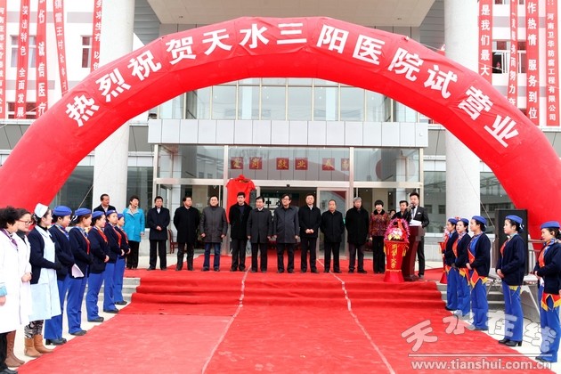 12月15日,天水三陽醫(yī)院舉行試營(yíng)業(yè)典禮。全國(guó)政協(xié)常委、省人大常委、省民革主委郭層城,省政協(xié)常委、省政協(xié)副秘書長(zhǎng)陳強(qiáng),省政協(xié)常委、定西市政協(xié)副主席梁笑玉,天水市副市長(zhǎng)霍衛(wèi)平,市政協(xié)副主席張克強(qiáng),市人大常委會(huì)原副主任鄧炎喜,市委統(tǒng)戰(zhàn)部常務(wù)副部長(zhǎng)劉鋒,天水國(guó)家農(nóng)業(yè)科技園區(qū)管委會(huì)主任張進(jìn)尚,麥積區(qū)委常委、宣傳部長(zhǎng)董珺,秦州區(qū)政協(xié)副主席羅榮昌等出席儀式。