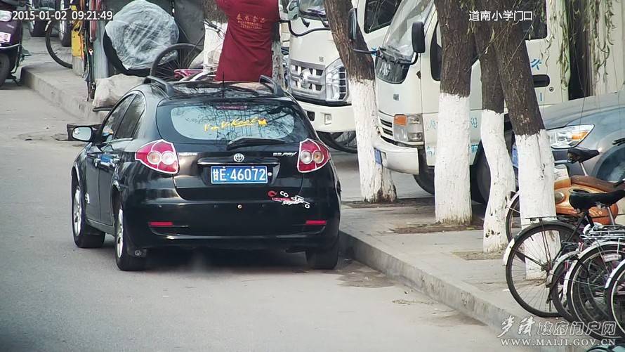 ▲甘EF2161(車輛所有人:任有軍)于2015年1月2日11時41分在麥積區(qū)道南小學(xué)門口違法停放,依據(jù)《道路交通安全法》第93條第2款、《甘肅省道路交通安全條例》第82條第10項(xiàng)之規(guī)定處100元罰款。 |