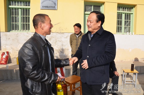 在翟山村,臧志軍與村干部、“雙聯(lián)”聯(lián)系戶圍坐在村委會(huì)院內(nèi),暢談一年來“雙聯(lián)”工作的推進(jìn)情況和全村的發(fā)展變化,重點(diǎn)圍繞村內(nèi)巷道硬化、村民吃水、果樹種植、子女上學(xué)、畜牧業(yè)發(fā)展、聯(lián)系戶增收等工作,就如何進(jìn)一步做好2015年雙聯(lián)工作與村干部進(jìn)行了深入探討交流。期間,他還看望慰問了3名聯(lián)系戶,并為他們送去了慰問金及生活用品。