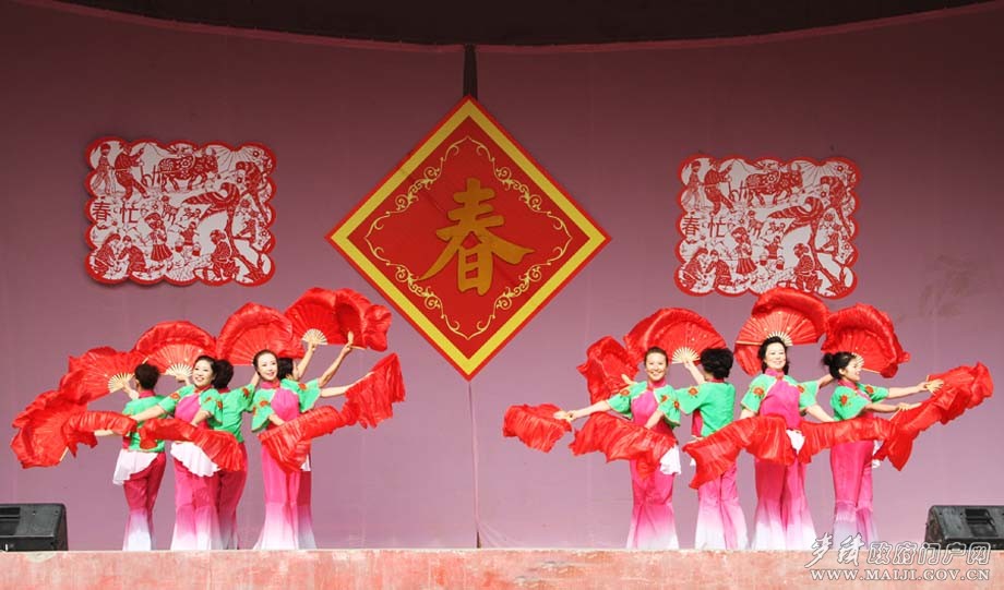 當天正逢甘泉鎮(zhèn)趕集日,來自四面八方的農(nóng)民群眾臉上寫滿了歡樂與笑容;顒訌V場的政策宣傳、醫(yī)療服務、科技文化、實用技術、書寫春聯(lián)等服務臺前,都擠滿了前來咨詢、領取物品資料的群眾,服務活動內(nèi)容豐富多樣,群眾爭相領閱,現(xiàn)場氣氛高漲。區(qū)文明辦為現(xiàn)場群眾贈送印有孝道圖案的年畫和印有24字核心價值觀的圍裙,衛(wèi)生系統(tǒng)醫(yī)務人員為群眾發(fā)放免費藥具和資料,區(qū)文聯(lián)各位書法家現(xiàn)場免費為農(nóng)戶書寫春聯(lián),科技部門講解發(fā)放農(nóng)村科技知識和果樹栽植實用技術用書,司法部門宣傳發(fā)放農(nóng)村法制政策和法律法規(guī)常識,舞臺上歌舞、秦腔、聲樂等精彩的文藝節(jié)目輪番上演……一項項、一個個實實在在的助農(nóng)惠農(nóng)服務讓甘泉鎮(zhèn)農(nóng)民群眾感受到的是陣陣暖流和濃濃愛意,也是一場豐盛的文化大餐。