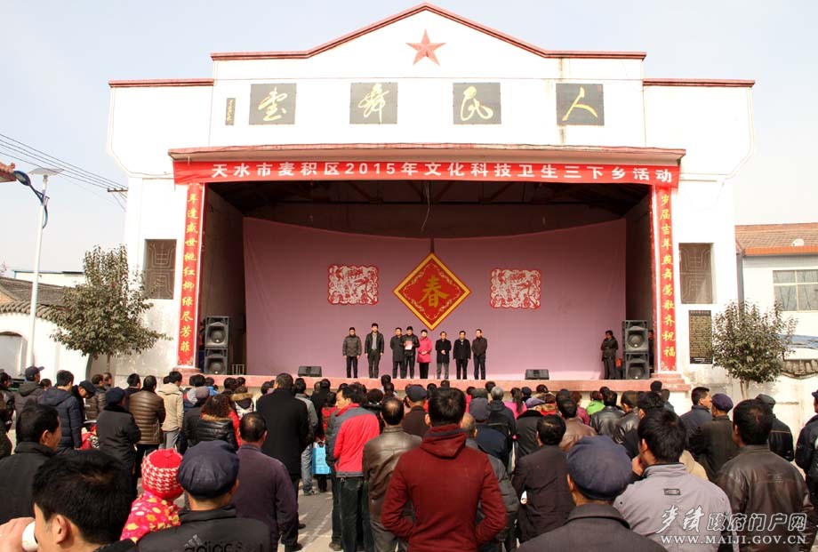 春風送爽,大地回春。2月5日,陽光明媚,天氣微寒,甘泉鎮(zhèn)人民舞臺廣場人頭攢動,熱鬧非凡。由區(qū)委宣傳部牽頭,區(qū)文廣局、衛(wèi)計局、司法局、科技局、科協(xié)、文聯(lián)、新華書店等單位聯(lián)合舉辦的麥積區(qū)2015年文化、科技、衛(wèi)生“三下鄉(xiāng)”集中示范活動在這里啟動。