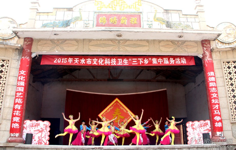 這次“三下鄉(xiāng)”集中服務活動是市委、市政府認真貫徹落實黨的十八大、十八屆三中、四中全會精神,踐行黨的群眾路線,改進機關作風,密切黨群干群關系的具體行動,也是弘揚社會主義核心價值觀,推進農(nóng)村精神文明建設,促進農(nóng)村經(jīng)濟社會轉(zhuǎn)型發(fā)展的重要舉措;顒硬扇∈、區(qū)并舉,以市為主的形式開展,由市委宣傳部牽頭,市科技、文化、衛(wèi)生等14個市直部門,組成的文藝演出、文化服務、衛(wèi)生服務、科技宣傳、法制宣傳服務隊,為農(nóng)民群眾送來了喜聞樂見的文化活動、科學實用的科技知識、健康有益的衛(wèi)生知識,同時麥積區(qū)也組織開展了“三下鄉(xiāng)”集中服務活動。