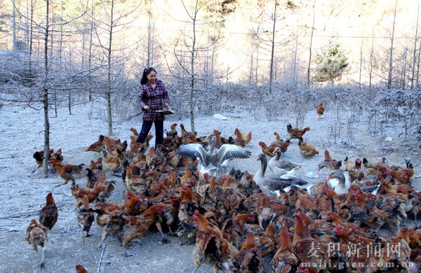 所謂散養(yǎng)雞場其實就是東吉田家門前的一片空地,空地旁還有一座不大的雞舍!奥犝f是有補貼還能保證回收,我才決定少養(yǎng)些試試的,沒想到效益挺好。第一茬200只雞三個月就凈賺了2000多元,于是又養(yǎng)了兩茬,一年下來也掙了六七千元。”談起養(yǎng)雞東吉田一臉喜悅,“沒想著發(fā)大財,反正在家地種了,孩子也看了,順手喂一下的事還能增加點收入,挺好的!”