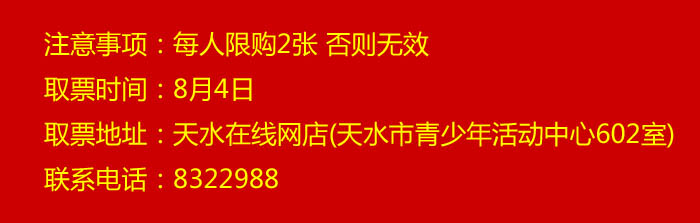 搶票開始時間:8月3日上午10時。(有個別買家在測試期間購買的票將按照每人限購2張的規(guī)定予以確認(rèn)。)