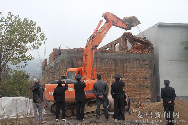 為進(jìn)一步加強(qiáng)城鄉(xiāng)規(guī)劃建設(shè)管理,嚴(yán)厲打擊違法建設(shè)行為,11月6日,麥積區(qū)組織綜合執(zhí)法、國(guó)土、公安等單位執(zhí)法人員開展聯(lián)合執(zhí)法,對(duì)花牛鎮(zhèn)二十鋪村一處違法建筑進(jìn)行了依法拆除。
