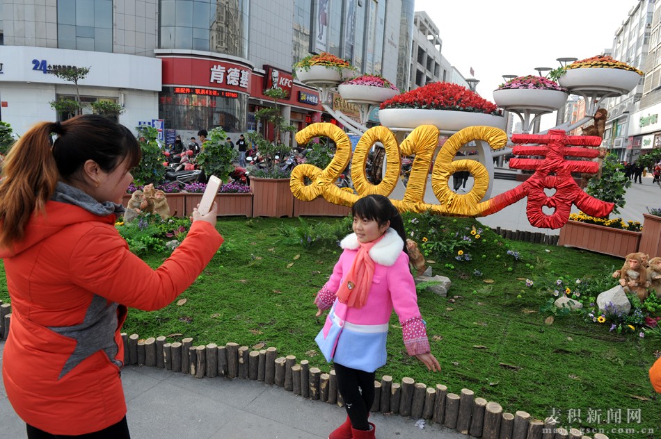 今年春節(jié),麥積區(qū)園林管理處街景美化著力突出“中國夢(mèng)”和“盛世花開”兩大主題,突出“2016”和“喜迎猴年”元素,按照“喜慶和諧、綠色節(jié)儉”的街景美化原則,將活力麥積裝扮的花枝招展、分外妖嬈。