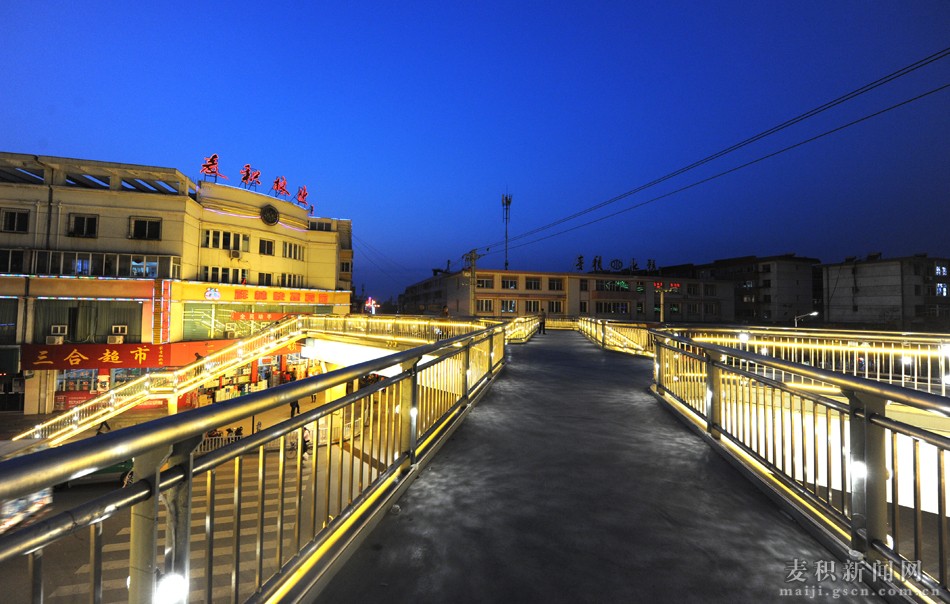 每當(dāng)夜幕降臨、華燈初上時(shí)分,麥積區(qū)埠南路——林水路什字人行天橋的LED造型亮化燈同時(shí)“點(diǎn)亮”,整座橋猶如飛架在城市上空的“彩虹”,既美化了麥積夜色,又方便了市民出行,市民“點(diǎn)贊”聲一片嘩然。