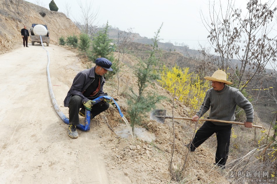 3月29日,記者隨同麥積區(qū)林業(yè)局林果技術(shù)人員深入天水成紀(jì)新城北山生態(tài)觀光園麥積段進(jìn)行采訪,沿花牛鎮(zhèn)肖家莊陡峭的山路盤旋而上,一路挺拔的塔柏、油松、雪松猶如一排排整齊的哨兵,在硬化的農(nóng)機(jī)路兩旁接受檢閱,浩浩蕩蕩的植樹大軍打點(diǎn)放線、運(yùn)轉(zhuǎn)苗木、挖坑栽樹、澆水培土,挖掘機(jī)、打坑機(jī)來回穿梭于林間小道、田間地頭……天水成紀(jì)新城北山生態(tài)植樹造林畫卷在這里徐徐展開。