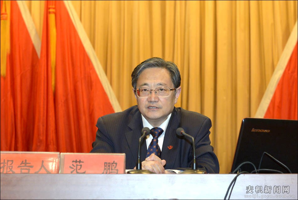 5月21日,黨的十八屆五中全會和習(xí)近平總書記系列重要講話精神省委講師團(tuán)麥積區(qū)報告會在區(qū)政府禮堂舉行,省委講師團(tuán)成員、省委黨校常務(wù)副校長范鵬作了題為《當(dāng)代共產(chǎn)黨人的理想人格》的專題宣講報告。