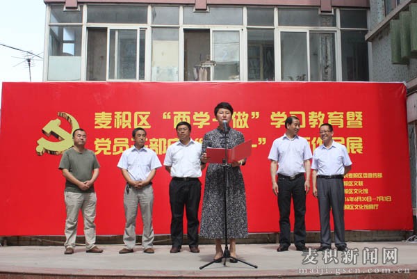 6月30日,在中國共產黨建黨95周年之際,麥積區(qū)“兩學一做”學習教育暨黨員干部慶“七·一”書畫作品展在區(qū)文化館開幕。區(qū)委常委、宣傳部部長董珺出席開幕儀式并講話,副區(qū)長楊鐵森主持開幕儀式。