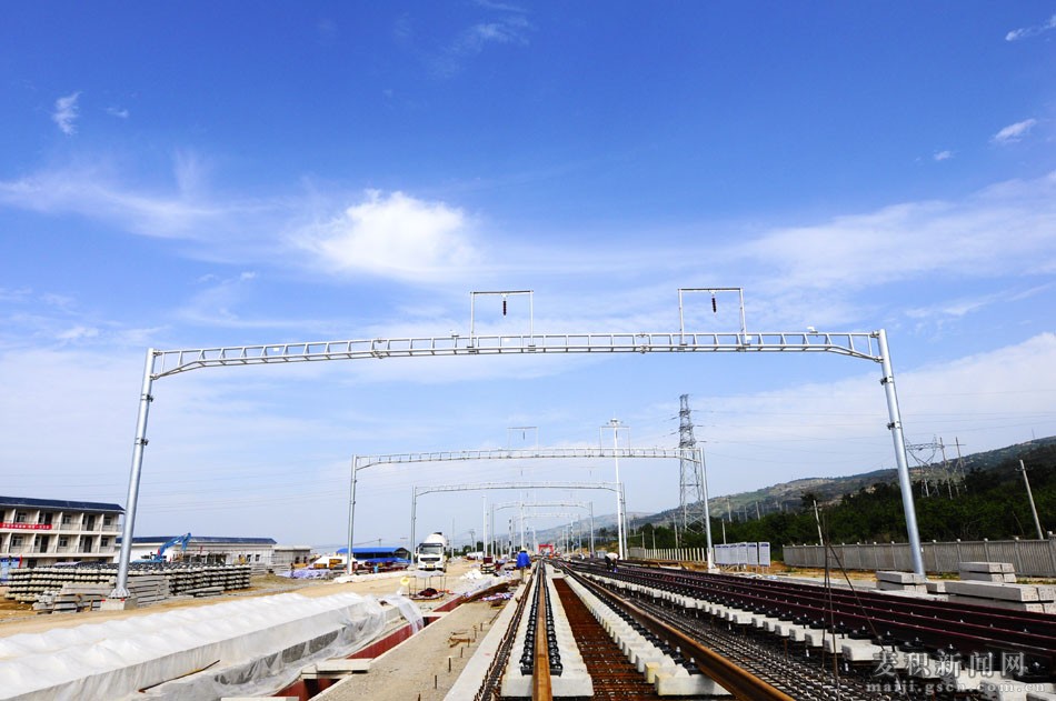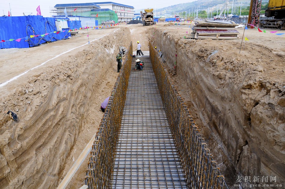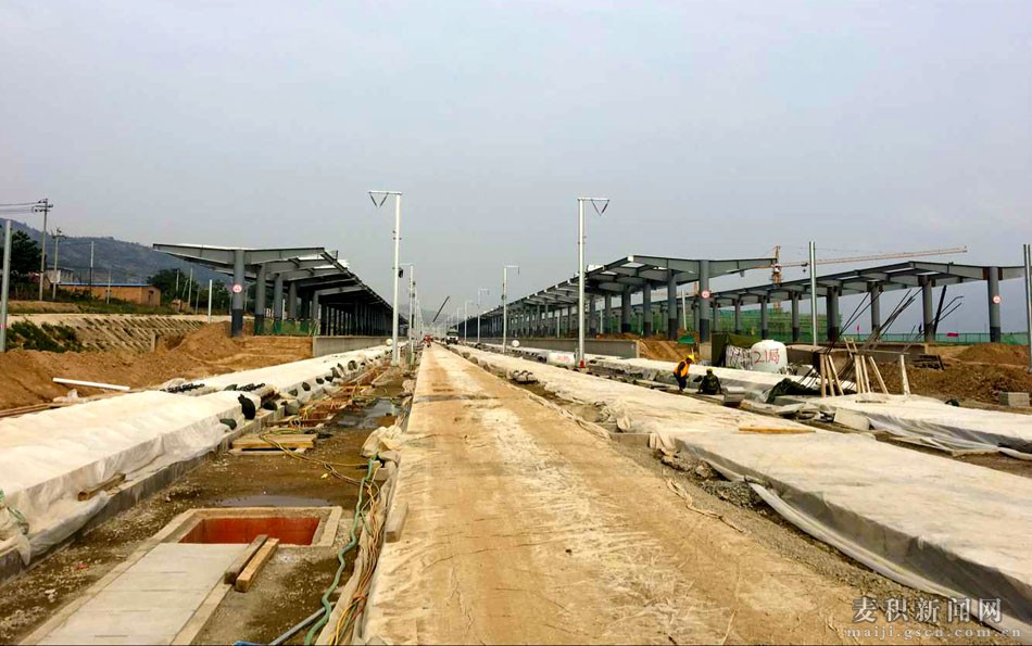 據(jù)了解,天水南車站起始里程DK767+500~DK769+650,全長2.15km, 總建筑面積30501.2㎡,其中站房建筑面積11998㎡,雨棚投影面積15841.1㎡,進(jìn)出站地道2662.1㎡,總造價約1.6億元。位于天水市麥積區(qū)花牛鎮(zhèn)花牛村至白崖村之間,車站規(guī)模按正線2條,到發(fā)線5條,安全線1條,大型停留線4條設(shè)計,占地面積365.4畝。整個站場施工緊緊圍繞路塹土方開挖、路基軟基處理、II類土及水泥改良土填筑、樁板結(jié)構(gòu)、附屬工程、無砟軌道施工為主線。