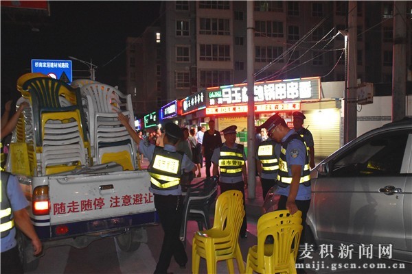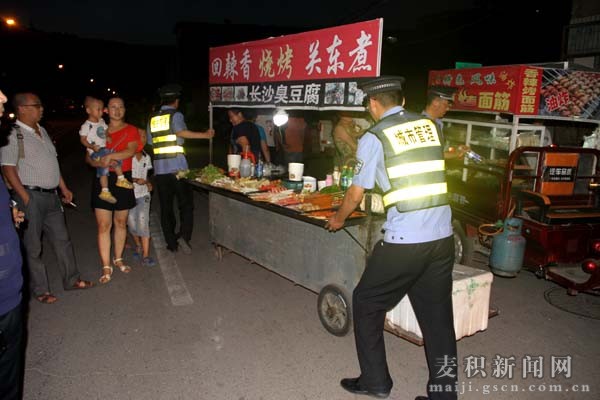 當(dāng)晚整治過程中,聯(lián)合執(zhí)法組對隴昌路西段、道北十字、張家村路口、商埠路東段、林水西路夜市、仿古街、分路口等燒烤攤點以及馬跑泉市場、天河南路、埠南路等城市道路沿線倚店露天燒烤進(jìn)行集中清理整頓,收到了良好的效果。