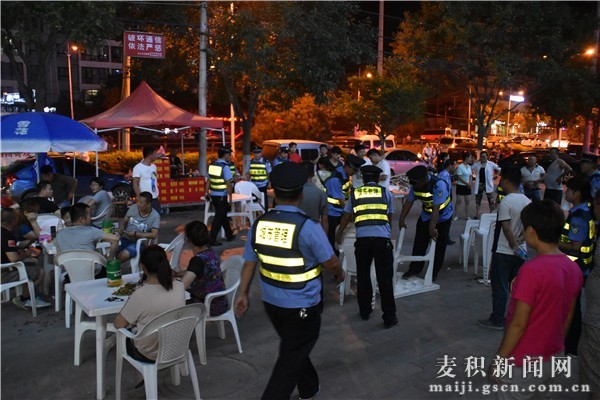 為了進(jìn)一步加強全區(qū)大氣污染防治工作,徹底解決露天燒烤污染大氣、影響市容市貌等突出問題,保障食品衛(wèi)生安全和群眾身體健康,為廣大居民營造良好的人居環(huán)境。7月27日晚,麥積區(qū)組織城管、環(huán)保、食藥監(jiān)、工商、公安、廣場管理處等部門單位及道北辦事處、北道埠辦事處、橋南辦事處、馬跑泉鎮(zhèn),抽調(diào)210余人組成4個聯(lián)合執(zhí)法組,同時對城區(qū)道北、道南、橋南及馬跑泉四個片區(qū)的露天燒烤攤點進(jìn)行集中綜合整治。