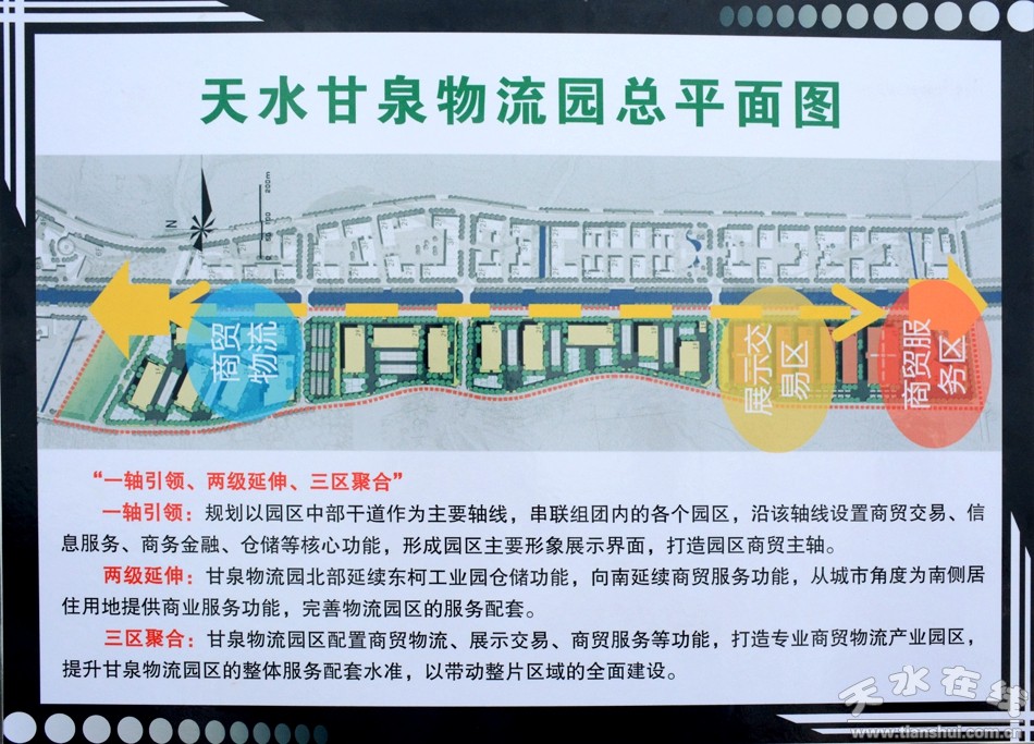 甘泉物流園區(qū)項目計劃總投資50000萬元,建設集物流倉儲、配送、信息發(fā)布為一體的大型綜合園區(qū)。溫利平要求,要堅持規(guī)劃引領,高起點定位甘泉物流園區(qū)規(guī)劃和管理運營模式,做好戰(zhàn)略定位、發(fā)展方向等功能布局和產(chǎn)業(yè)發(fā)展規(guī)劃,以產(chǎn)業(yè)發(fā)展支撐物流園區(qū)發(fā)展,迅速編制完善項目規(guī)劃設計方案,突出區(qū)位和資源優(yōu)勢,與秦州區(qū)藉口物流園區(qū)項目協(xié)調配合形成優(yōu)勢互補、錯位發(fā)展的格局。要學習借鑒發(fā)達地區(qū)物流產(chǎn)業(yè)發(fā)展的先進經(jīng)驗,從整體上統(tǒng)籌考慮、有序推進,及早開工建設。
