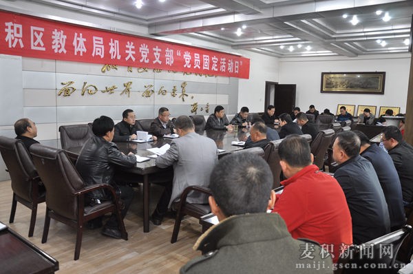 區(qū)教體局: 11月3日上午,麥積區(qū)教育體育局開展了“黨員固定活動日”, 集中傳達學習了黨的十八屆六中全會公報和天水市第七次黨代會精神。區(qū)教體局機關(guān)全體黨員參加了活動,非黨員機關(guān)干部觀摩了活動。