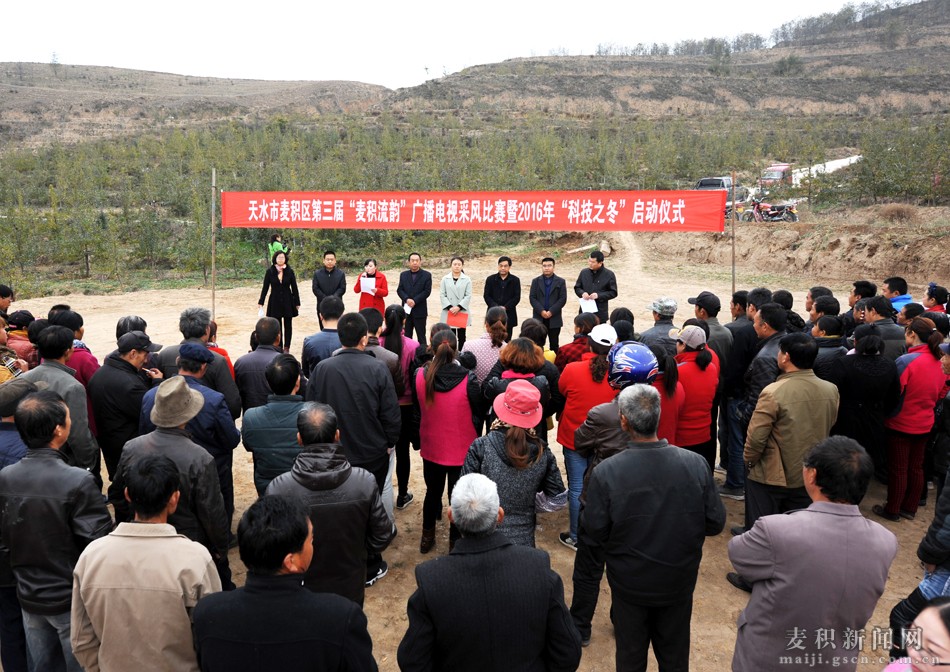 11月11日,麥積區(qū)第三屆“麥積流韻”廣播電視采風比賽暨2016年“科技之冬”活動啟動儀式在石佛鎮(zhèn)大陽山果業(yè)農民專業(yè)合作社蘋果基地舉行。麥積區(qū)人大常委會副主任方明太出席并宣布活動啟動,區(qū)政府副區(qū)長成紅梅作了講話,區(qū)政協(xié)副主席胡桂琳主持啟動儀式。