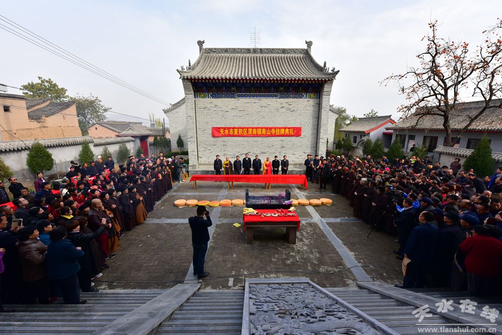 11月14日上午, 位于麥積區(qū)渭南鎮(zhèn)張?jiān)澹筛拭C盛達(dá)集團(tuán)董事長(zhǎng)趙滿堂先生斥巨資鼎力支持修建的南山寺,舉行了隆重盛大的掛牌成立儀式。麥積區(qū)政協(xié)主席楊續(xù)祥。全國(guó)人大代表、甘肅省政協(xié)常委、甘肅盛達(dá)集團(tuán)董事長(zhǎng)趙滿堂,甘肅佛教協(xié)會(huì)副會(huì)長(zhǎng)、天水市佛教協(xié)會(huì)會(huì)長(zhǎng)、滲金寺主持悟空法師,麥積區(qū)委統(tǒng)戰(zhàn)部副部長(zhǎng)、區(qū)民族宗教事務(wù)管理局局長(zhǎng)謝崇太,天水市人大代表、華夏盛達(dá)實(shí)業(yè)集團(tuán)有限公司副總裁頡光照等有關(guān)方面人士和來(lái)自四面八方的信教群眾一千多人參加了掛牌典禮。 渭南鎮(zhèn)副鎮(zhèn)長(zhǎng)賈江波主持掛牌儀式。