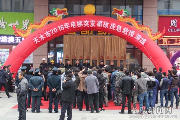 11月28日下午,天水市2016年電梯突發(fā)事故應(yīng)急救援演練在麥積區(qū)金都商廈舉行。市質(zhì)監(jiān)局副局長(zhǎng)張志偉,麥積區(qū)政府副區(qū)長(zhǎng)樊華參加演練動(dòng)員儀式并觀摩演練活動(dòng)。