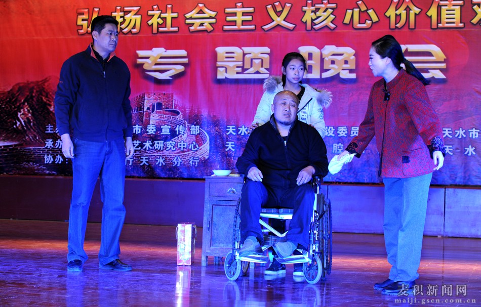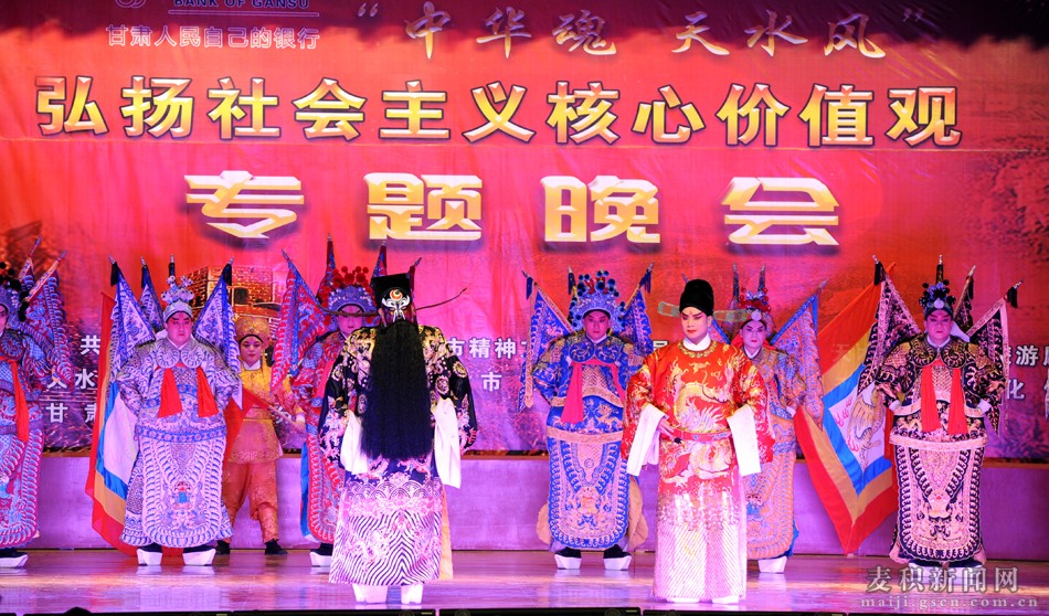 12月13日晚,麥積區(qū)政府禮堂燈光璀璨,歌舞升平,歡聲雷動。由天水市委宣傳部、市文明辦、市文化和旅游局主辦,天水歌舞藝術(shù)研究中心、天水西秦腔研究院、天水市文化館承辦,甘肅銀行天水分行協(xié)辦的“中華魂·天水風(fēng)”弘揚社會主義核心價值觀專題晚會巡演在這里完美落幕。