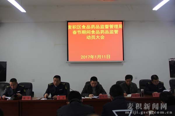 春節(jié)將至,為確保2017年春節(jié)期間廣大人民群眾飲食用藥安全,維護(hù)食品藥品市場秩序和社會穩(wěn)定,使人民群眾過上一個歡樂祥和的節(jié)日,1月11日,麥積區(qū)食藥監(jiān)局召開春節(jié)期間食品藥品監(jiān)管動員大會,就春節(jié)前轄區(qū)內(nèi)食品藥品安全工作進(jìn)行了安排部署。