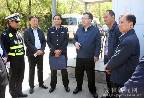 4月28日上午,麥積區(qū)委書記張智明帶領(lǐng)區(qū)直有關(guān)部門、單位主要負(fù)責(zé)人,對(duì)麥積山大道沿線行車安全和旅游景區(qū)安全工作進(jìn)行了專題督查。區(qū)政府副區(qū)長(zhǎng)杜根祥一同督查。