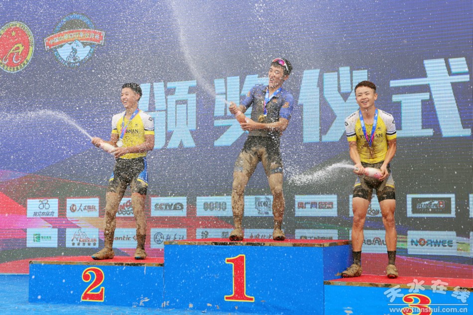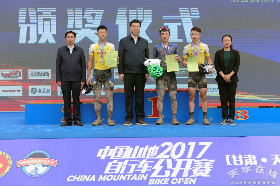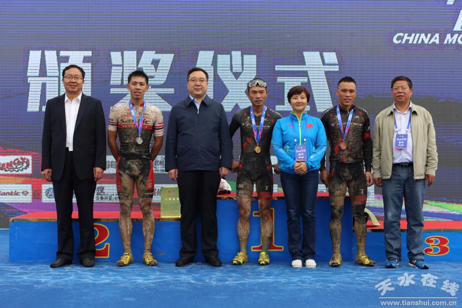 (為男子專業(yè)組山地越野賽獲獎選手頒獎)