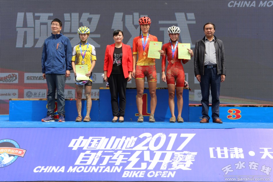 (為女子專業(yè)組山地越野賽獲獎選手頒獎)