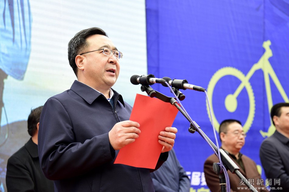 市政府副市長(zhǎng)張建杰講話(huà)。他代表中共天水市委、市人大、市政府、市政協(xié)向本次比賽的開(kāi)賽表示熱烈祝賀,向出席今天發(fā)車(chē)儀式的各位領(lǐng)導(dǎo)、各位來(lái)賓及參賽運(yùn)動(dòng)員、裁判員表示誠(chéng)摯問(wèn)候,向?yàn)楸敬伪荣惤o予大力支持的社會(huì)各界人士表示衷心感謝。張建杰說(shuō),今天在麥積區(qū)舉辦的“麥積山杯”全國(guó)山地自行車(chē)邀請(qǐng)賽,是我市依托國(guó)家5A級(jí)景區(qū)麥積山,精心打造的本土品牌賽事,已經(jīng)舉辦了四屆,具有廣泛的影響力,是全國(guó)體育旅游精品賽事。舉辦好本次比賽,對(duì)于豐富廣大群眾文化體育生活,推動(dòng)天水體育文化旅游融合發(fā)展,提升天水對(duì)外知名度和影響力具有十分重要的意義。