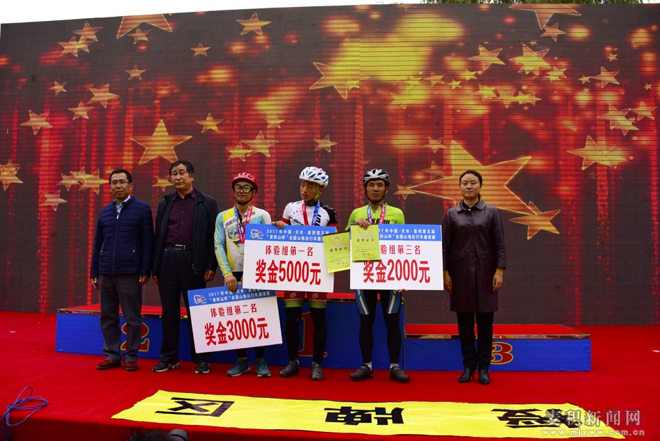 經(jīng)過(guò)兩個(gè)多小時(shí)的頑強(qiáng)拼搏,來(lái)自浙江飛龍?bào)w育車(chē)隊(duì)的王權(quán)剛,廣西北海凡偉諧車(chē)隊(duì)的蘇文利,周全成分別獲得體驗(yàn)組第一、二、三名;海南瓊中奔格內(nèi)車(chē)隊(duì)的何沖,即刻啟程UCC車(chē)隊(duì)的張俊英,LAPIERRE車(chē)隊(duì)的單江娜分別獲得女子組第一、二、三名;王小橋,來(lái)自麥積區(qū)甘泉中學(xué)自行車(chē)隊(duì)的楊杰,甘肅UCC車(chē)隊(duì)的王毅博分別獲得本地男子組第一、二、三名;青海閱騎網(wǎng)車(chē)隊(duì)的馬海軍,三個(gè)火槍手的丁勇,邁森蘭——四川高校聯(lián)隊(duì)的劉楊分別獲得男子精英第一、二、三名。