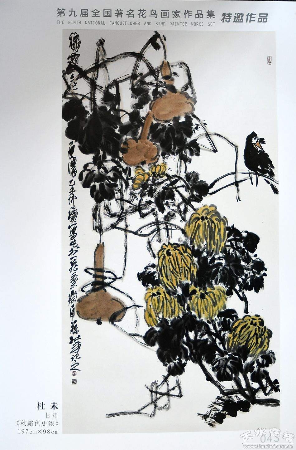 日前,由中國花鳥畫研究會、北京大寫意藝術(shù)研究院主辦,《當代花鳥畫》雜志社、《畫媒》雜志社協(xié)辦的第九屆全國花鳥畫名家作品展在重慶中國三峽博物館隆重開幕。天水市麥積區(qū)美術(shù)館館長、大寫意花鳥畫家杜未作為本次大展組委會委員應(yīng)邀出席開幕式,參加研討會、筆會及全國著名花鳥畫家采風等一系列活動,其作品《秋霜色更濃》作為特邀作品參展并結(jié)集出版,是甘肅省唯一一位入展本屆全國花鳥畫名家作品展的畫家。