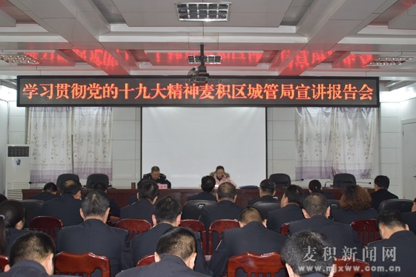 12月13日,麥積城管局舉行黨的十九大精神宣講報(bào)告會。報(bào)告會特邀麥積區(qū)委宣講團(tuán)成員李彩云授課,局干部職工共50余人參加了宣講報(bào)告會。