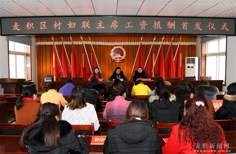 2月7日,麥積區(qū)村婦聯(lián)主席工資報酬首發(fā)儀式在元龍鎮(zhèn)舉行,元龍鎮(zhèn)22個村婦聯(lián)主席首次領到了每月300元的工資報酬,標志著該區(qū)婦聯(lián)組織改革破解了難題,改革工作實現(xiàn)了落地見效。