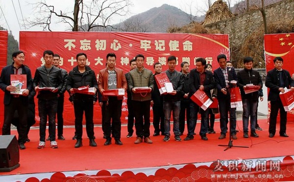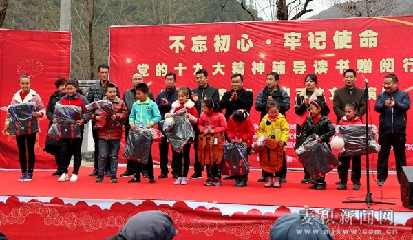 當天的活動中,新華書店為村民贈送了黨的十九大書籍和花椒種植及科技讀物書籍,并給學生贈送了書包和學習用品,舉行了豐富多彩的文藝演出活動,既有城里送來的文化下鄉(xiāng),也有鄉(xiāng)村村民自己吼秦腔,城鄉(xiāng)結合唱出了新時代的最強音,佘家門村支部書記張福太以自己親身經(jīng)歷進行了朗讀。