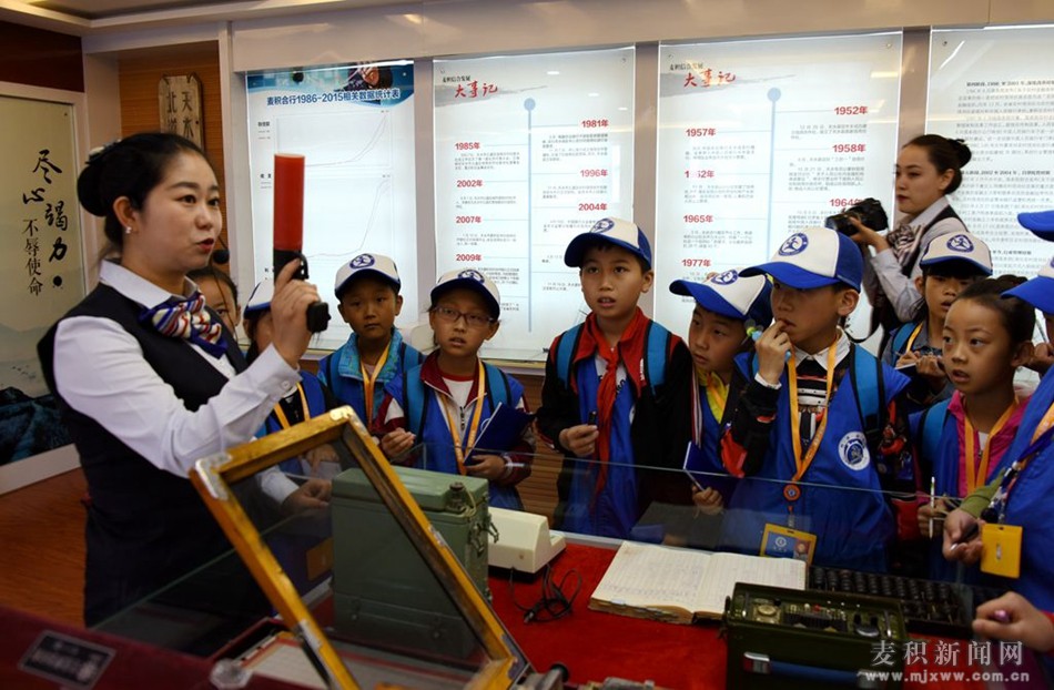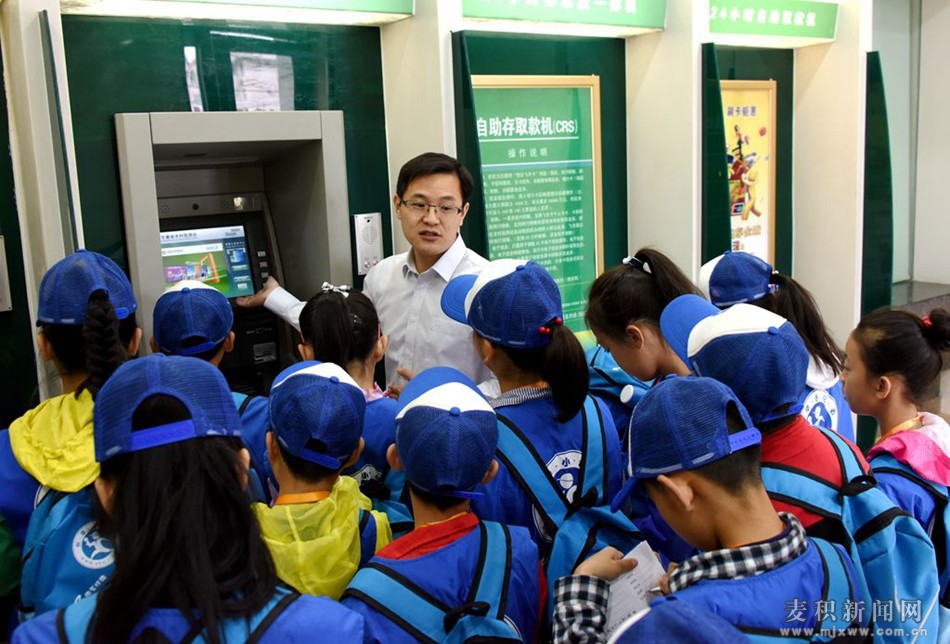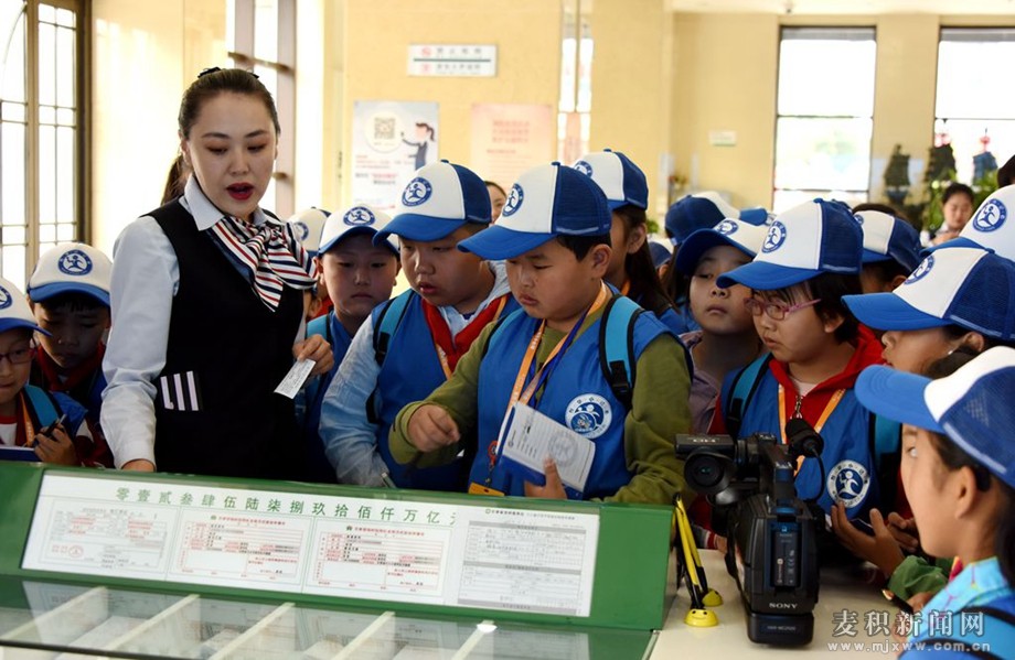 活動中,麥積農(nóng)村合作銀行團委書記吳旭東帶領(lǐng)40名小記者參觀了營業(yè)部大廳和展廳,詳細介紹了銀行主要業(yè)務(wù)、營業(yè)區(qū)域分工、業(yè)務(wù)辦理步驟、取號機的使用方法等及麥積合作銀行的發(fā)展歷程。
