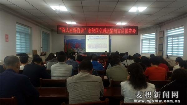 區(qū)交通運(yùn)輸局 近日,區(qū)交通運(yùn)輸局開展“百人百課百講”宣講活動(dòng),邀請(qǐng)市委研究室副主任吳和平作專題報(bào)告,全體干部職工聆聽宣講。
