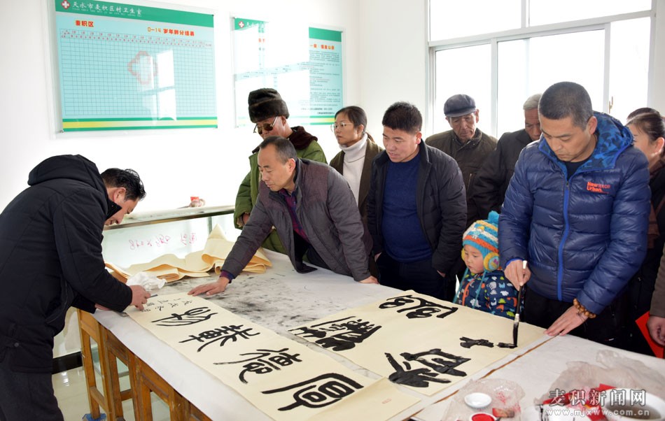 啟動儀式結(jié)束后,文藝演出在舞蹈《盛世麥積》中拉開帷幕,獨唱《我們的中國夢》《美麗的心情》、秦腔《金沙灘》《打鎮(zhèn)臺》《楊門女將》等13個精彩文藝節(jié)目美輪美奐,精彩紛呈,深受廣大群眾的歡迎,不時贏得現(xiàn)場觀眾陣陣掌聲和叫好聲。特別是由麥積區(qū)秦劇團編排的戲曲《懶漢脫貧》結(jié)合當前脫貧攻堅工作,用通俗易懂的語言,活潑新穎的方式宣傳了黨的十九大精神和扶貧政策,既符合時代精神又接地氣,將整場演出活動推向了高潮;顒悠陂g,區(qū)文化館還組織書畫愛好者現(xiàn)場為群眾揮毫潑墨書寫字畫、對聯(lián)等。