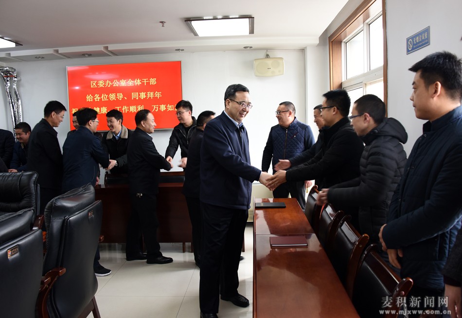 聲聲慰問暖人心,殷殷希望鼓干勁。2月11日(農(nóng)歷正月初七),是春節(jié)假期恢復(fù)上班的第一天。市政協(xié)副主席、麥積區(qū)委書記張智明等區(qū)領(lǐng)導(dǎo)深入?yún)^(qū)直各機關(guān)單位,向全區(qū)干部職工致以新春祝福和親切問候,勉勵大家在新的一年里要以嶄新的精神面貌,緊緊圍繞區(qū)委區(qū)政府中心工作,立足各自工作崗位,再接再厲,全力推動全區(qū)經(jīng)濟社會健康穩(wěn)步發(fā)展。區(qū)領(lǐng)導(dǎo)趙繼文、高志強、牛新虎、朱剛、孫忠平、杜崢嶸、閻小鵬、楊棟、汪亞偉、周岳紅等一同慰問。