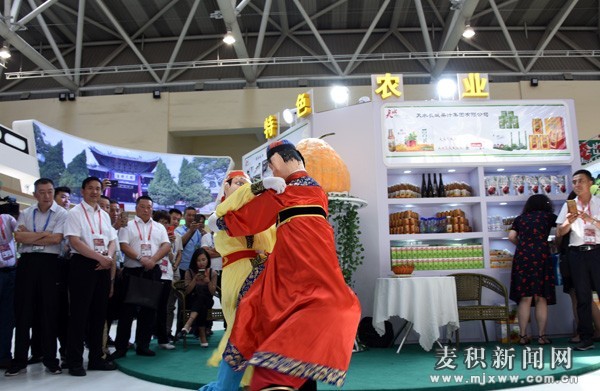 據(jù)麥積區(qū)商務(wù)局和招商局負(fù)責(zé)人介紹,在甘肅國(guó)際會(huì)展中心天水館,有天水花牛蘋果(集團(tuán))有限公司、天水長(zhǎng)城果汁集團(tuán)有限公司、甘肅孟菇食品有限公司、天水漢唐麥積山藝術(shù)陶瓷有限公司等20家企業(yè)、17類、108個(gè)產(chǎn)品,展品主要有花牛蘋果、天水櫻桃、隴上花牛蘋果汁、漢唐陶藝小沙彌、中藥材、三陽(yáng)手工掛面、土蜂蜜、元龍花椒、淀粉、核桃、木耳、香醋等產(chǎn)品。