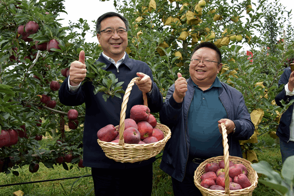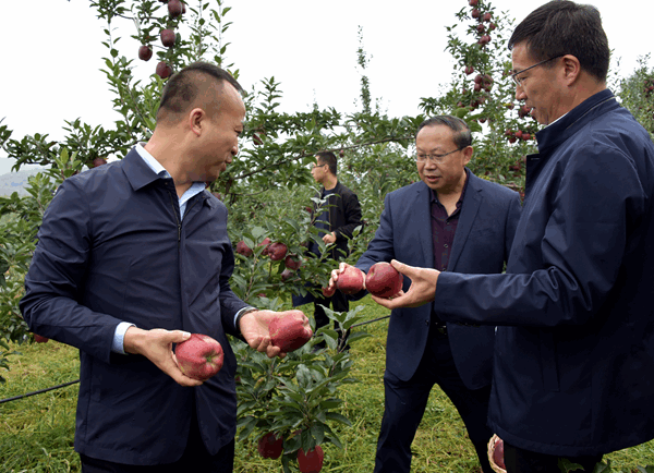 (麥積區(qū)委書記張智明同麥積人大常委會主任趙繼文點贊花牛蘋果)