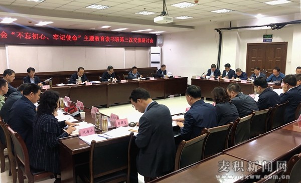 麥積區(qū)融媒體中心訊(記者 趙怡天) 9月21日,市政協(xié)副主席、麥積區(qū)委書記張智明主持召開區(qū)委常委會(huì)“不忘初心、牢記使命”主題教育讀書班第三次交流研討會(huì),大家繼續(xù)緊緊圍繞學(xué)習(xí)《習(xí)近平關(guān)于“不忘初心、牢記使命”重要論述選編》、《習(xí)近平新時(shí)代中國特色社會(huì)主義思想學(xué)習(xí)綱要》,習(xí)近平總書記今年8月視察甘肅重要講話和指示精神等內(nèi)容,結(jié)合工作實(shí)際,進(jìn)行交流研討。