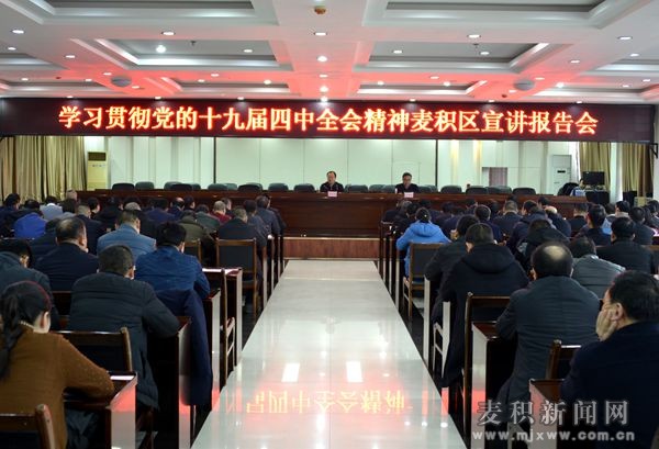 麥積區(qū)融媒體中心訊(記者 李云強(qiáng))12月20日,市委常委、組織部部長(zhǎng)賈義翔深入麥積區(qū)宣講黨的十九屆四中全會(huì)精神。市政協(xié)副主席、區(qū)委書記張智明主持宣講報(bào)告會(huì)。