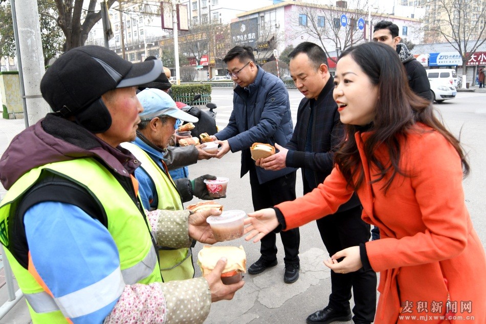 麥積區(qū)融媒體中心訊(特約記者 竇耀輝)濃濃臘八情,溫暖獻愛心。1月2日是農(nóng)歷臘月初八,中國傳統(tǒng)的臘八節(jié),共青團麥積區(qū)委攜手天水馬玉林餐飲、龍城救援志愿者服務隊、陽光幼教·愛心火炬公益團隊等開展“一碗臘八粥 溫暖一座城”愛心公益活動,為麥積城區(qū)一線執(zhí)勤的交通警察、城管隊員和環(huán)衛(wèi)工人們送去了熱氣騰騰的臘八粥及節(jié)日的問候。