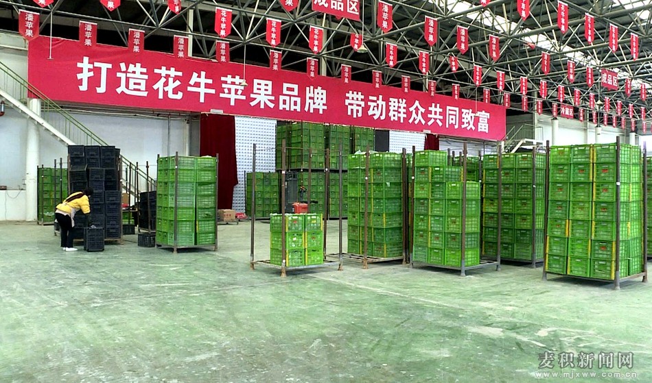 與此同時,在花牛蘋果(集團)有限責任公司庫房,工人們正在打包銷售的蘋果。公司自建成以來已經(jīng)帶動全區(qū)13000余戶農(nóng)戶共同發(fā)展,吸納了參與務工群眾1000多人,帶動農(nóng)戶增收1300萬元,支付農(nóng)民工工資300余萬元,為全區(qū)農(nóng)民脫貧致富奔小康做出了積極貢獻。