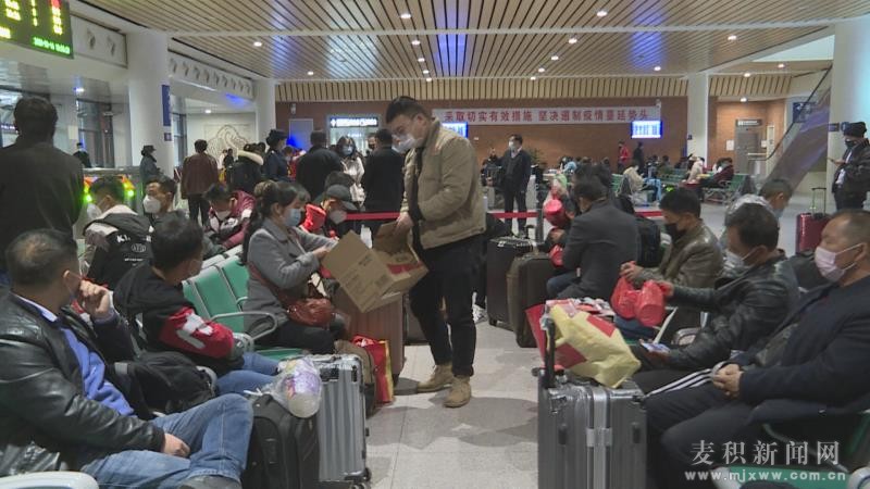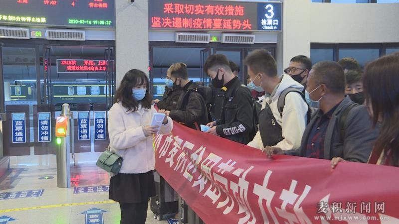 在天水火車站,麥積區(qū)人社局和勞務(wù)公司工作人員對務(wù)工人員逐一進行了掃健康碼、體溫監(jiān)測和人員身份核實登記,宣傳了疫情防控期間的注意事項,并發(fā)放了由麥積區(qū)人社局準備的備用口罩和餐包。隨后,務(wù)工人員登上了開往江西南昌的Z128次列車。