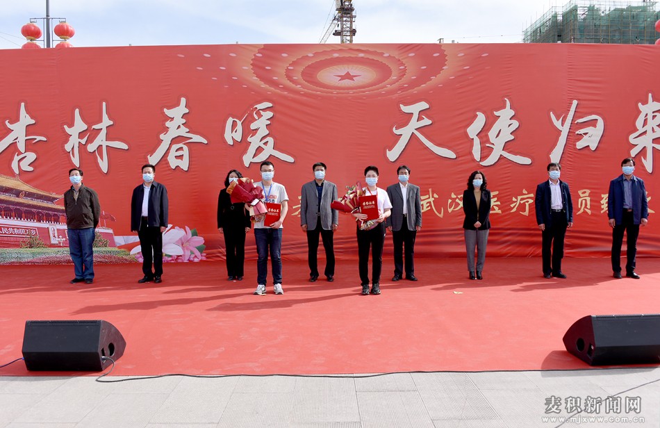 閻小鵬代表麥積區(qū)四大組織和全區(qū)65萬(wàn)人民,向載譽(yù)凱旋的馳援武漢醫(yī)務(wù)人員表示親切的慰問(wèn)和熱烈的歡迎!向持續(xù)奮戰(zhàn)在抗疫一線的全區(qū)所有醫(yī)護(hù)工作者致以崇高的敬意!向全體醫(yī)務(wù)人員家屬表示衷心的感謝!