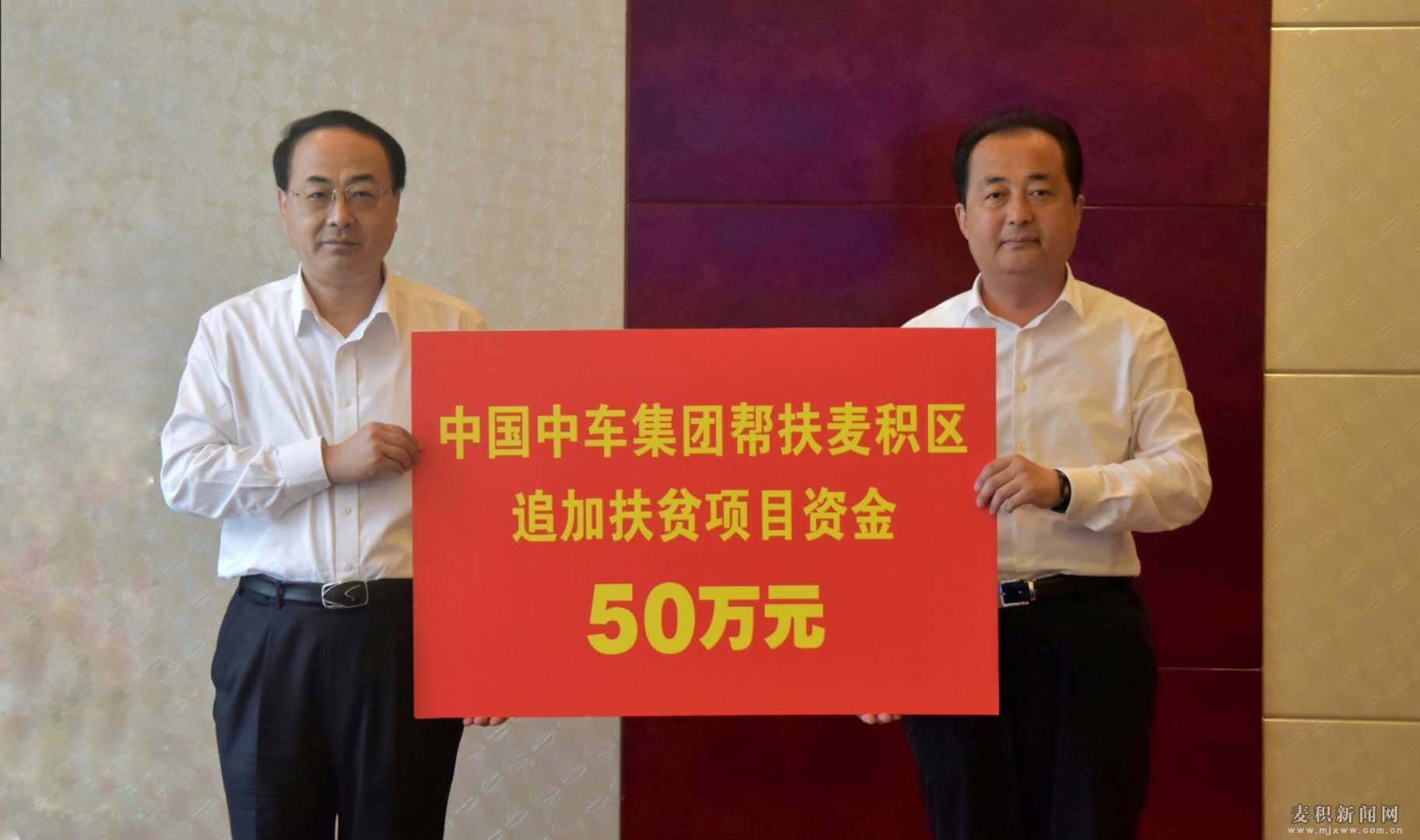 在召開的中車集團(tuán)定點扶貧麥積區(qū)工作座談會上,趙衛(wèi)東、張智明分別就天水市和麥積區(qū)脫貧攻堅及定點扶貧工作情況作了詳細(xì)介紹。舉行了捐贈儀式,中車集團(tuán)向麥積區(qū)捐贈了50萬元幫扶資金。