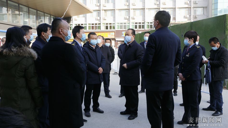 麥積區(qū)融媒體中心訊(記者 丁承志 吳雪镕)1月28日,春運第一天,麥積區(qū)委副書記、區(qū)長成少平帶領(lǐng)區(qū)直相關(guān)部門再次來到天水火車站檢查“兩站一場”疫情防控工作落實情況。區(qū)委常委、常務(wù)副區(qū)長樊華,區(qū)委常委、宣傳部部長王啟峰,副區(qū)長張樹增及天水火車站相關(guān)負責(zé)人一同檢查。